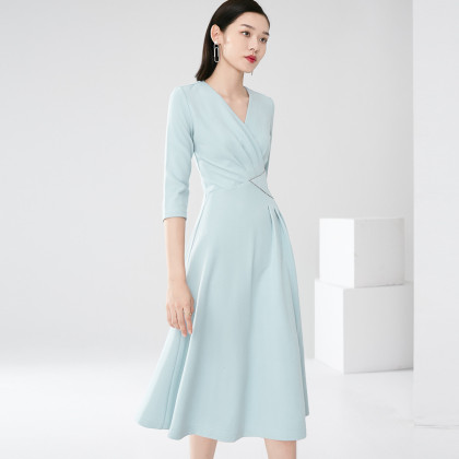 Spring slim skirt solid color high waist lady V-neck age reduction casual