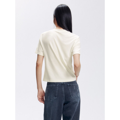 Short sleeve, solid color, basic type, ribbed, crop length, slim fitting, pull on closure
