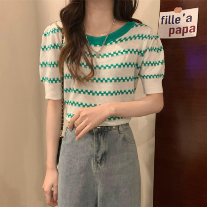 • Thin summer round neck short sleeved knit sweater